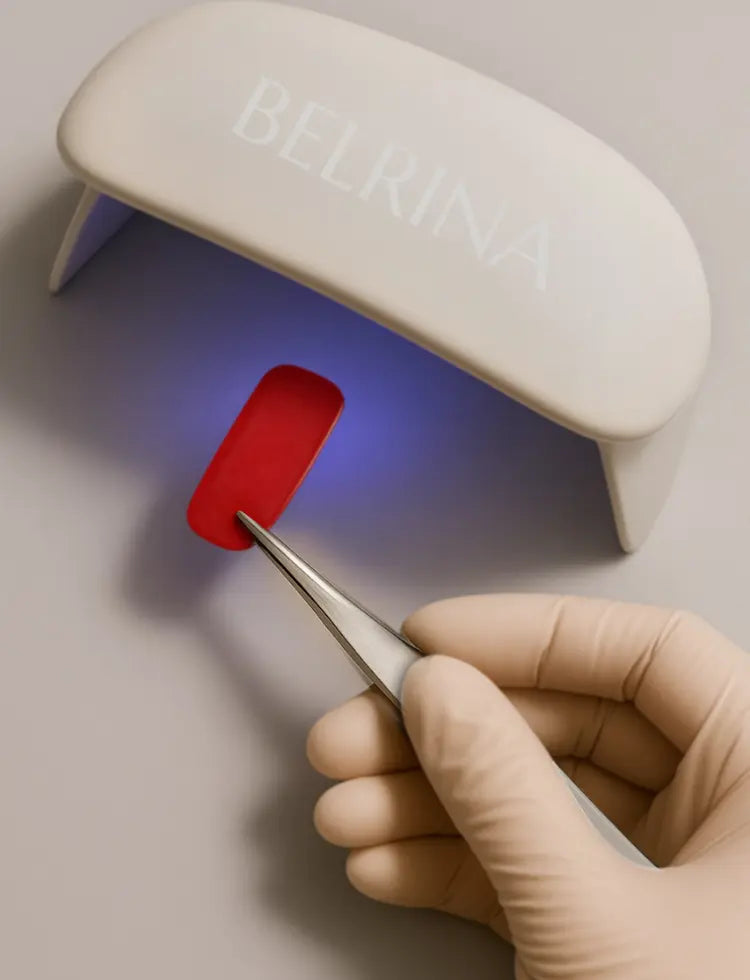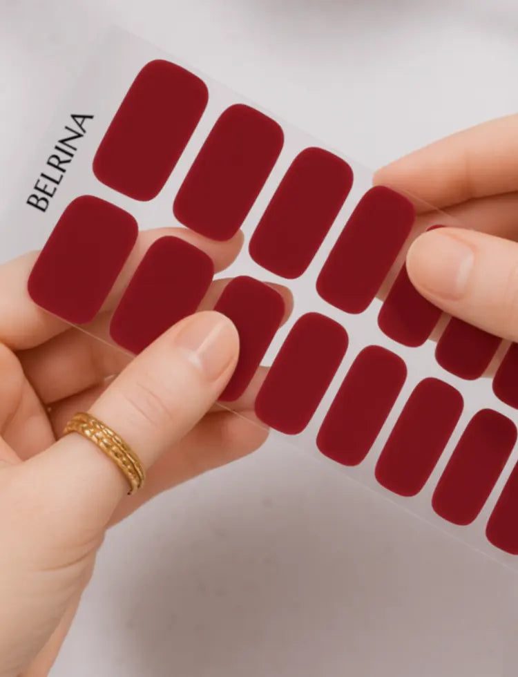 100% real gel polish, semi-cured into flexible strips that easily adhere to your nails. Once applied, simply cure them at home for a flawless, salon-quality finish.